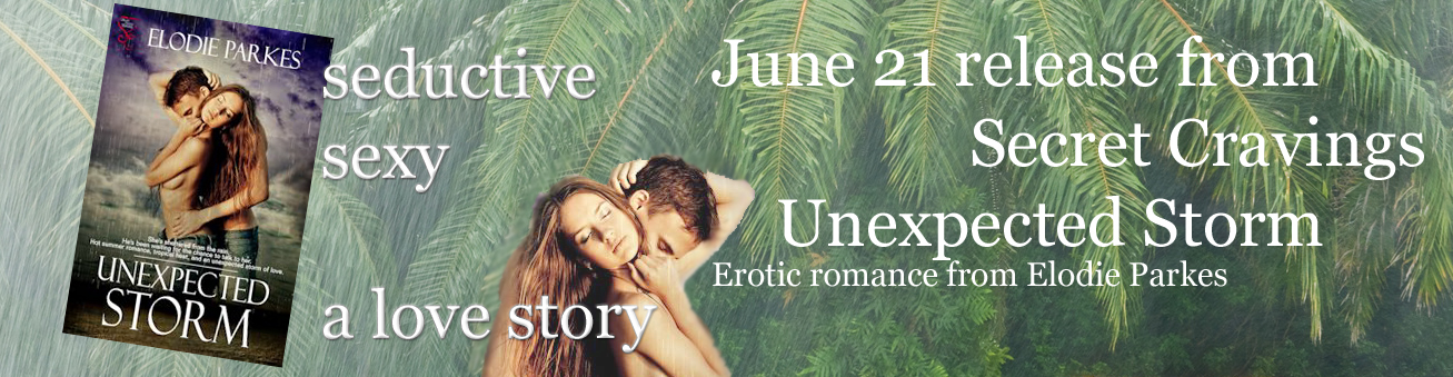 Elodie Parkes is visiting with us again at the Spicy Butterfly Garden. This girl has been busy! She has a new release from Secret Cravings Publishing entitled Unexpected Storm and another release from Hot Ink Press coming out next week. Elodie is here today to show off Unexpected Storm. Congratulations, Elodie! 🙂